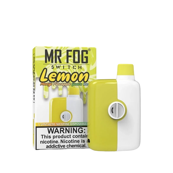 Discover the MR Fog Switch 5500 LEMON MANGO PINEAPPLE GUAVA, a tropical blend of lemon, mango, pineapple, and guava with a refreshing icy finish. Enjoy up to 5500 puffs of delight.