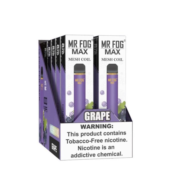 Enjoy the sweet and juicy taste of Mr Fog Max Grape. With up to 1000 puffs, offers a refreshing grape flavor and smooth hits, perfect for everyday use.